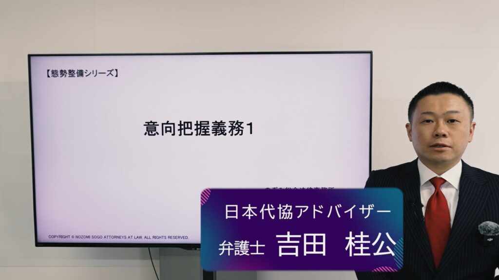LP【無料公開】代理店の態勢整備(2025年版) 2025.09.292025.11.05 日本代協アドバイザーであり元金融庁検査官の吉田弁護士が本質と実践方法をわかりやすく解説してくれています。 事業基盤を強化して持続的な成長を実現しましょう! 本動画コンテンツは日本代協正会員向けのサービスである「日本代協アカデミー」でしかご利用できないコンテンツである「第1回 意向把握義務1」を無料公開いたします。 今回公開する「第1回意向把握義務1」では不適切な行為・意向把握義務の導入経緯・概要・具体的方法について学習できます。 正式版のコンテンツでは次の12回のコンテンツをご用意しております。さらに正式版では、無料公開にはない動画内のスライド資料もダウンロード可能です。 第1回意向把握義務1 ← 今回、無料公開中!第2回意向把握義務2第3回情報提供義務1第4回情報提供義務2第5回情報提供義務3第6回最善利益勘案義務第7回態勢整備義務1第8回態勢整備義務2第9回態勢整備義務3第10回態勢整備義務4第11回態勢整備義務5第12回コンプライアンスと企業価値の向上 続きが気になる方はコチラ! 続きの第2回以降は日本代協アカデミーへお申込みいただくことでご利用いただけます。是非、ご検討ください。 新規申込ページへ